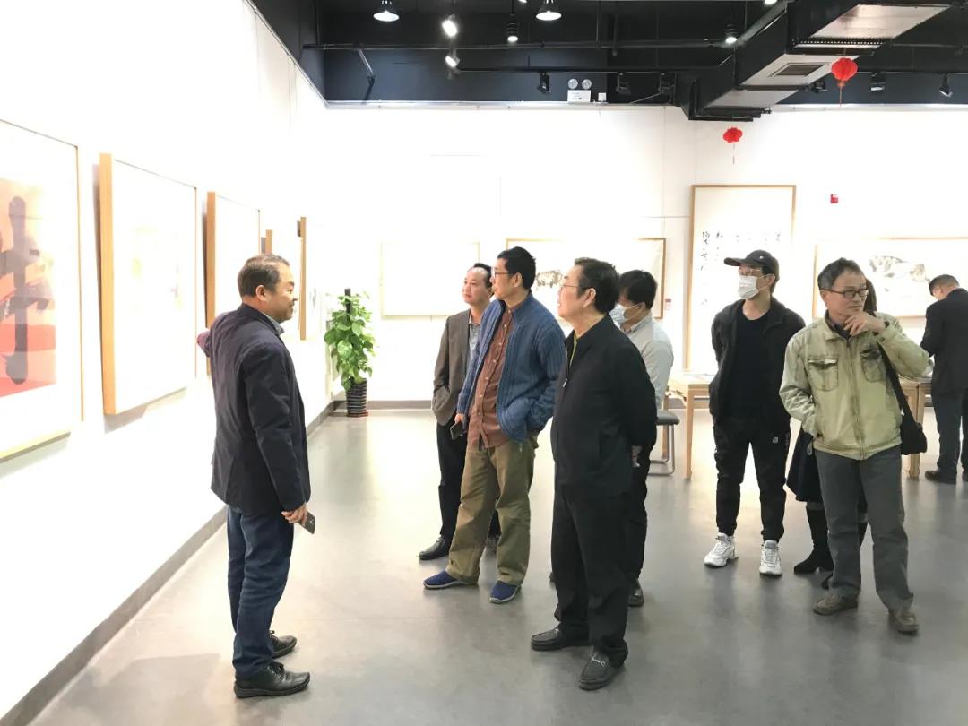 ▲廣西政協(xié)原副主席、中國美協(xié)原副主席黃格勝(中)與廣西書畫界人士一同參觀展覽