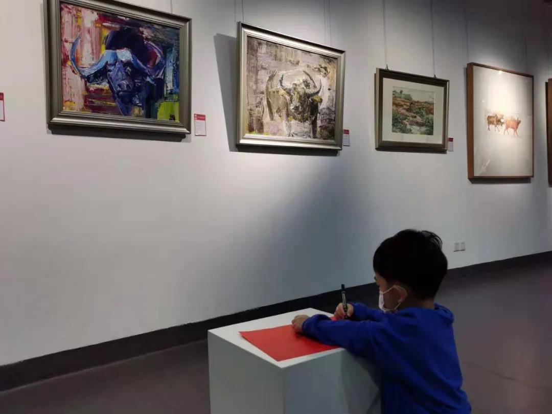展覽以生肖?牛為主題,展?出了百余?位嘉賓和區(qū)?內外優(yōu)秀?藝術家及行業(yè)領?軍人物的150余幅作品?,涵蓋中國?畫、油畫、水彩、版畫、書法等美術類?型。創(chuàng)作者通過豐厚的藝術?素養(yǎng),將?生動的造?型和靈動?的筆墨相結?合,以既貼?近生活又個性化的表達,把牛?勤勞實干、純良溫馴的形象展現(xiàn)?在觀眾眼前,一幅幅作品挖掘了孺?子牛、拓荒牛、老黃牛?的深厚文化底蘊,蘊含著?中國人民自強?不息、砥礪奮進的精神密?碼。