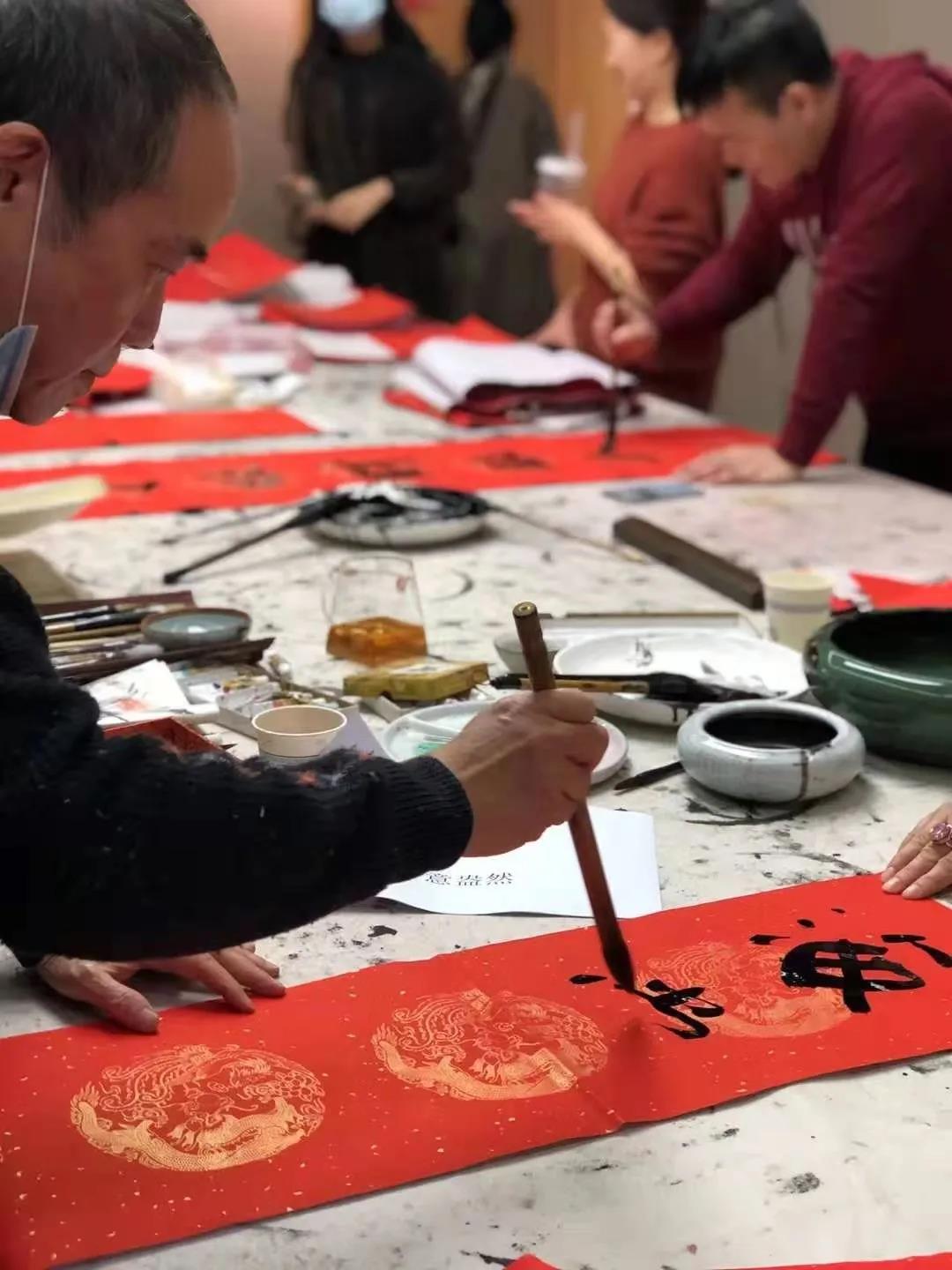 展覽首日恰逢農歷的南方小年,當天下午,文化惠民贈春聯(lián)活動如火如荼。書法名家們揮毫潑墨、筆走龍蛇,帶著鼠隨寒冬去,牛送春風來的美好期許,把濃濃的祝福融進紅彤彤的春聯(lián)里,市民們爭相圍觀,紛紛排隊迎春接福。